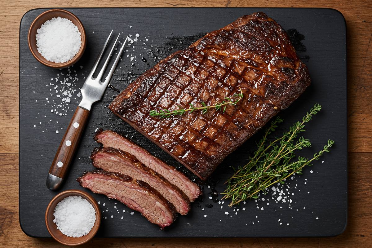 Rest in a cooler for 90 minutes before slicing against the grain, 1/4 inch thick.